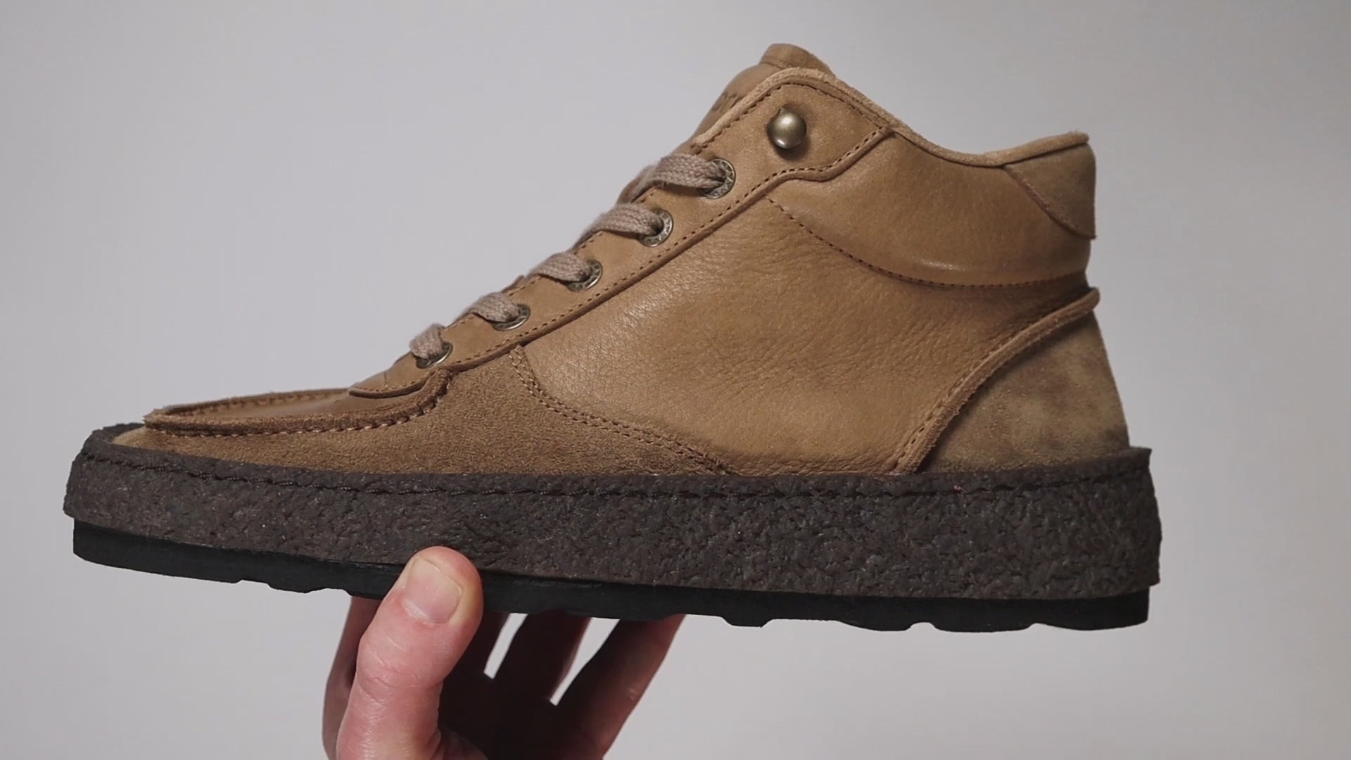 * Outsole: Hand formed cupsole, Vibram Morflex EVA sole / 6mm natural crepe sidewall.