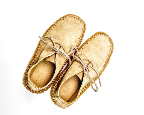 The first is a Tuscan reverse suede called Castoro, which has a super-soft feel and is completely unlined, providing a slipper-like sensation in wear. The second is an Italian long-hair leather, also known as pony hair. These versions are lined with full-grain leather for a more structured feel and fit. All come with a 6mm thick natural crepe rubber sole and a removable cushioned footbed, crafted with real love and attention to detail.