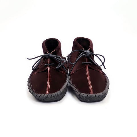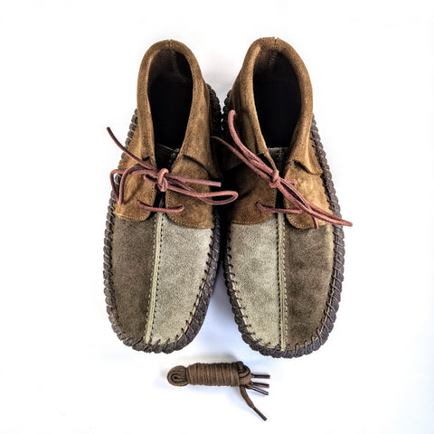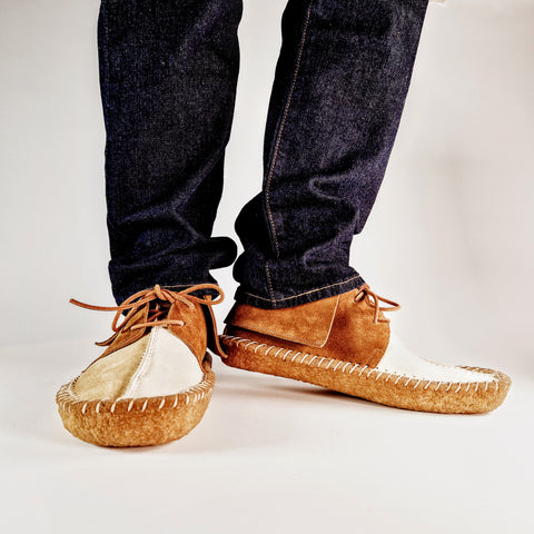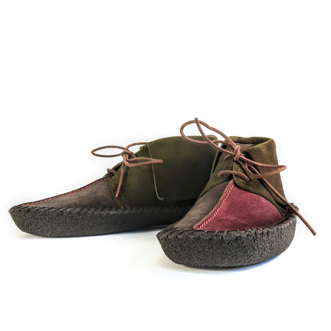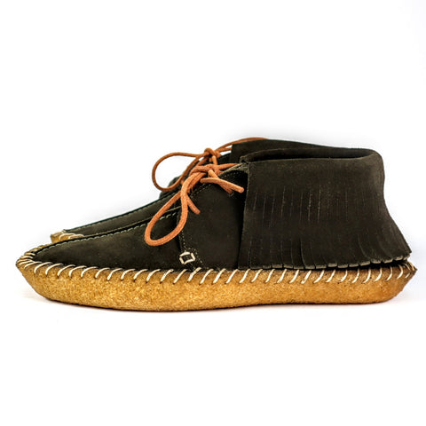 Haig/Fringe is a boot influenced by the DNA of Risedale. Just like Risedale each pair of Haig has a hand stitched sole that each craftsman spends over an hour to lovingly complete .Haig also uses the same stroble construction making it light and flexible to wear .The split toe vamp allows for a variety of colour combinations that all go to give Haig its subtle yet edgy look .We also added a collar flap and/or a fringe for extra measure. Every pair of Haig is made from the finest Tuscan reverse suede and that combined with a natural crepe rubber outsole that results in a premium pair of shoes to last a lifetime.
