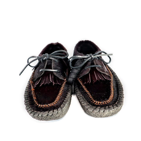 Harley offers a distinct variation on the traditional boat shoe design. Building upon this classic silhouette, Harley incorporates hand-stitched natural crepe soles, consistent with many of our product lines. The two launch editions, available in Plum and Black, feature an exquisite Italian-crafted pony hair finish leather, providing Harley with a sophisticated look and feel. Additionally, each pair includes removable tongue fringes (referred to as kilties in the USA) for a distinctive appearance. Harley is also equipped with a spare lace made of leather and cotton, along with a natural cotton travel bag to help maintain their looks for many years.