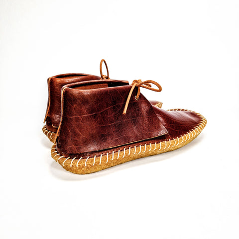 The Scotton boot is a new product developed by us over the last 12 months, now launching 2 versions, in its Q version It is made with leather from the Horween tannery in Chicago, using vegetable tanned double horse front aniline leather. Due to the natural characteristics of the leather, each pair will have unique variations in appearance, no 2 pairs will ever be the same. Scotton is made from a wonderful soft Portuguese leather from the Boaventura tannery that has a fantastic tumbled finish. The Scotton design includes a more relaxed fit for foot entry and wear. Instead of the standard Stroble board, Scotton uses a full leather Stroble placed under a leather-covered footbed. The overall feeling in wear is one of a relaxed comfort that quickly forms to the shape and contour of the wearer’s feet. Each pair is finished with a natural crepe rubber sole, which is hand-formed and hand-stitched with natural twine. Each pair of the Q release is individually numbered, both options come with our unique 2-part natural canvas carry/storage bag and 3 separate sets of laces.