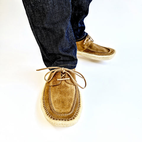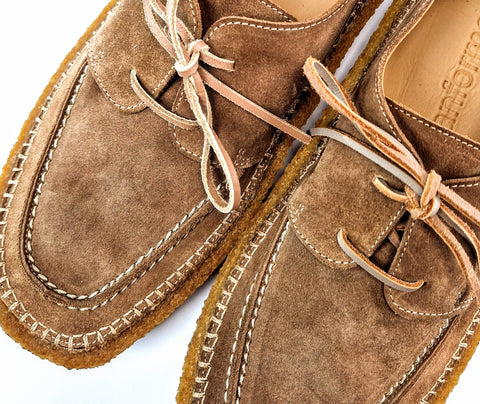 Hambleton, our original shoe launched in 2023, features Velopell Luxury Suede and premium cow leather lining has been a great success as our go-to shoe, so for those longer and warmer days, we decided to introduce a lighter weight version. We call it Hambleton II, now made with a soft Sciarada Castoro reverse suede upper without a lining, offering a lightweight flexible version for the summer. The Strobel construction, soft upper, and natural crepe rubber provide exceptional comfort, making Hambleton II one of our most comfortable shoes to date.