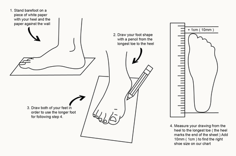 Please use the below guide on how to safely measure your feet to ensure you purchase the best and most accurate fit. Please note that owing to the unlined nature of the upper and the natural characteristics of the crepe rubber sole, each pair of Risedale will relax in its fitting after a few wears.